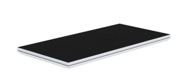 Praticable modulaire scénique Stage82 • Taille du plateau : 2 m x 1 m • Plateau en contreplaqué de bouleau coloris noir épaisseur 15 mm • Charge admissible : 750 kg / m² • Utilisation en intérieur et extérieur